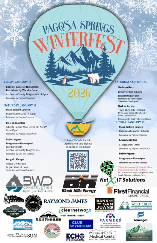 Sponsored by the Chamber of Commerce. See the balloons fill the winter sky over the Pagosa Lakes area. Grab a cup of coffee or cocoa, and come enjoy the spectacular view! Viewing starts at 8:30 am.